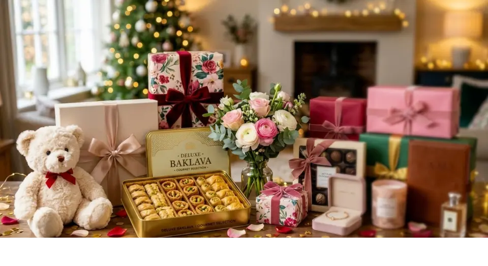 ٢ كيلو بقلاوة مشكلة، عطر فرنسي راقي وباقة ورد طبيعي